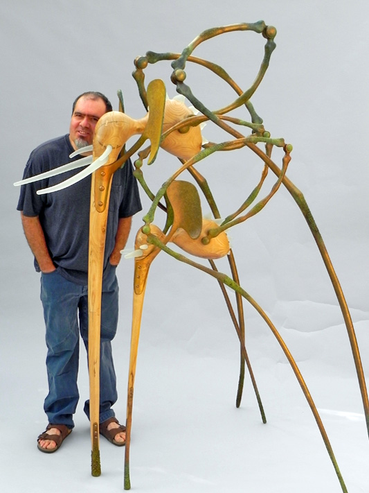 Born in Tucson Arizona in 1968. Adon grew up amidst the astonishing natural beauty of Mendocino County in Northern California. An enthusiastic admirer of the exquisite forms found in nature he considers the evolutionary process the most accomplished of all sculptors. While Adon's own sculptures are deeply rooted in the forms found in the natural world his work also references the synthetic or machine world as well as the work of other artists, both contemporary and historic. Adon is fascinated with symbiosis and hibridity and creating fictive organic/synthetic entities. He has coined the term "biometamorphic" to describe these hybrid creations, from "bio" meaning life or organism, "meta" meaning to transform or transcend and "morph" meaning form or shape. Adon currently lives and works in Santa Cruz California. | |||||
